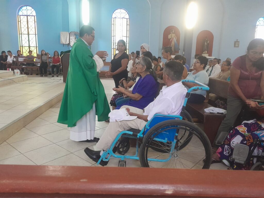 El pueblo nos acoge con una hermosa y plena Eucaristía en el templo Sagrado Corazón de Jesús, las palabras del Padre están rebosando de Esperanza y proyectos de bien ¡que no lo defraudemos! Ni a él, ni a Dios que nos confía está misión. Luego de la Eucaristía pasamos al salón comunal donde el alcalde con el pueblo nos ofrece un agasajo al mismo tiempo que ofrece apoyo material y espiritual. Sor Ana Teresa de Jesús Porturas agradece expresando que “no tiene ni oro, ni plata, solo un corazón grande para amar y unas manos para trabajar por el engrandecimiento de los moradores de este distrito.